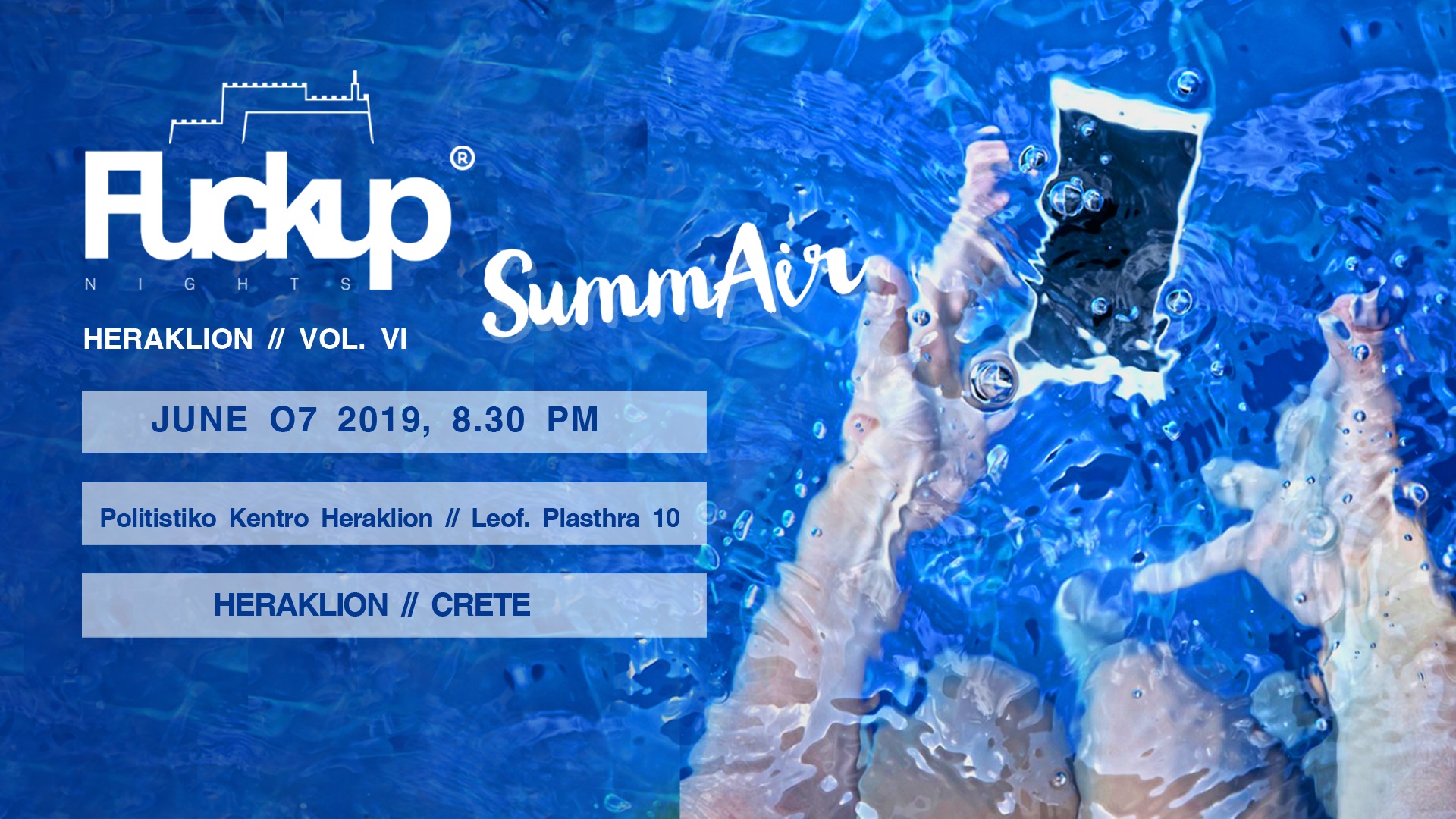 Το Fuckup Nights Heraklion // VOL.6 SummAir επιστρέφει με καλοκαιρινό αέρα, την Παρασκευή 07 Ιουνίου, στις 20:30, στο Πολιτιστικό Κέντρο Ηρακλείου!
