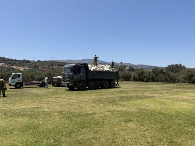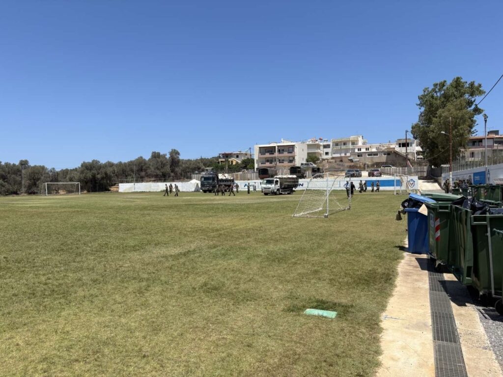Ταυτόχρονα με φροντίδα του Στρατού το γήπεδο εκκενώθηκε από τις σκηνές που είχαν τοποθετηθεί για να φιλοξενήσουν τους μετανάστες οι οποίοι από χθες μετεγκαταστάθηκαν και φιλοξενούνται στο κτίριο της Κιτρένωσης, στην περιοχή του Λατζιμά.
