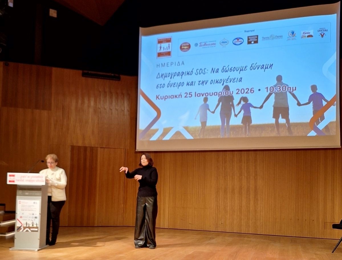 Στην ημερίδα με θέμα «Δημογραφικό SOS: Να δώσουμε δύναμη στο όνειρο και την οικογένεια», που πραγματοποιήθηκε την Κυριακή 25 Ιανουαρίου 2026 στην Τεχνόπολη στο Γκάζι, συμμετείχε η Αντιπεριφερειάρχης Ρεθύμνης, κα Μαρία Λιονή, όπου και  πραγματοποίησε χαιρετισμό ως Πρόεδρος της Επιτροπής Κοινωνικής Συνοχής και Οικογένειας της Ένωσης Περιφερειών Ελλάδας.