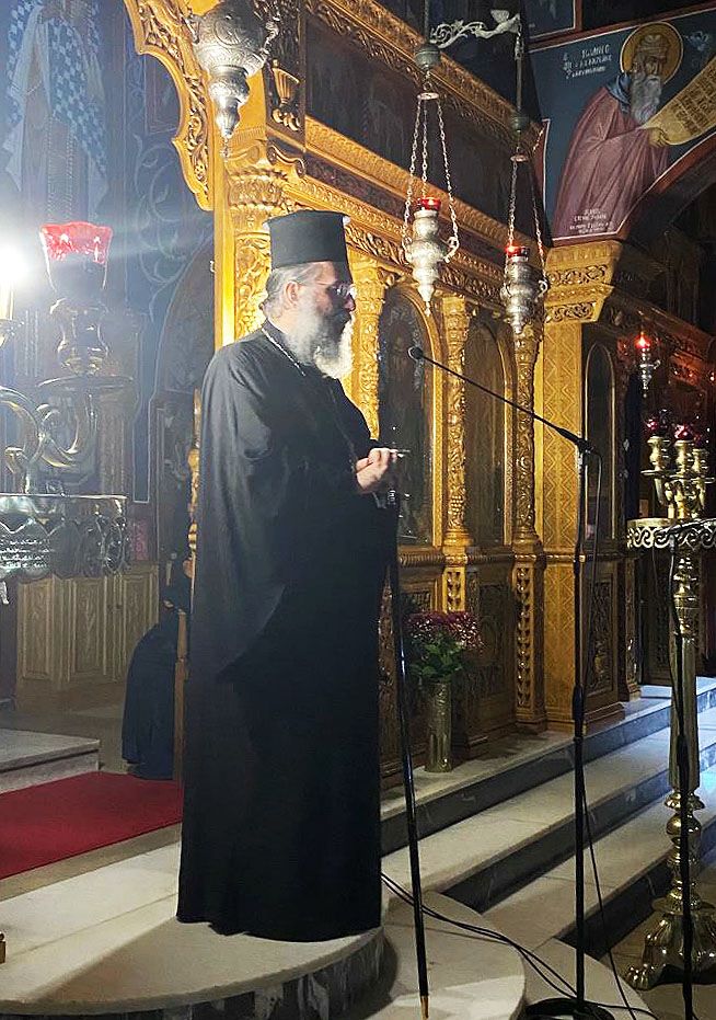 Προ της απολύσεως της ακολουθίας, ο Επίσκοπός μας, απευθυνόμενος στο εκκλησίασμα, αναφέρθηκε συνοπτικά στα θεσπέσια τροπάρια του Μεγάλου Κανόνος, ποίημα του Αγίου Ανδρέου Κρήτης, προτρέποντας τους ανθρώπους στην οδό της μετανοίας καθώς πορευόμαστε προς την Αγία και Μεγάλη Εβδομάδα και το Άγιο Πάσχα.
