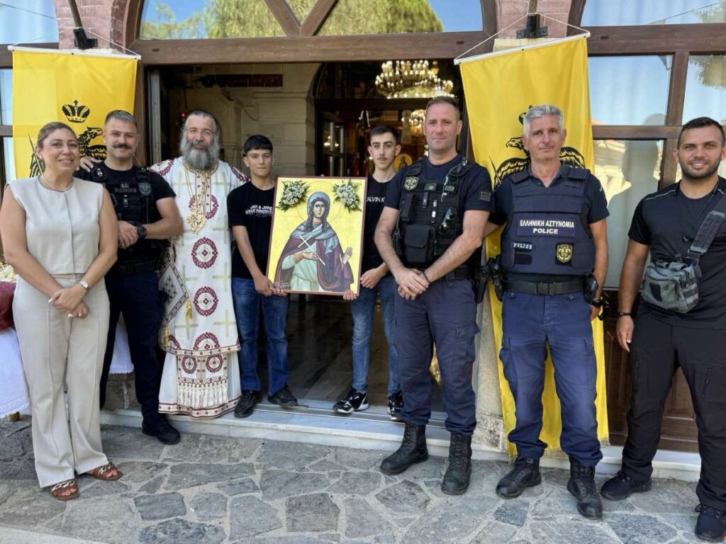 Προ της απολύσεως της Θείας Λειτουργίας, στην προσλαλιά του, ο Σεβασμιώτατος αναφέρθηκε τόσο στο βίο της Αγίας Μεγαλομάρτυρος Κυριακής, προτρέποντας όλους να έχομε τη γενναιότητα, το φρόνημα και το σθένος της Αγίας, όσο και στα θέματα της επικαιρότητας, αναφωνώντας το «Στώμεν καλώς!» του Αρχαγγέλου σε όλα τα επίπεδα της κοινωνικής ζωής και αναστροφής.