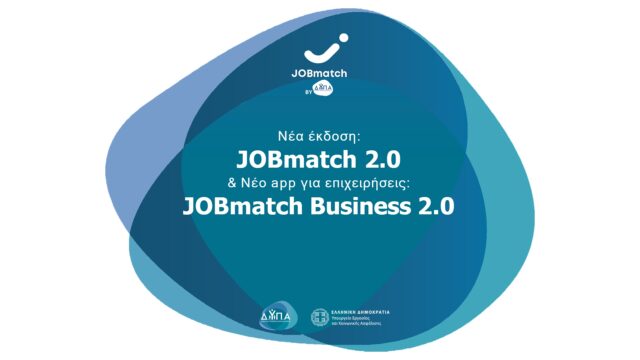 Η νέα εφαρμογή JOBmatch 2.0 by DYPA προσφέρει ακόμη ταχύτερο matching με τις επιχειρήσεις που ψάχνουν προσωπικό!