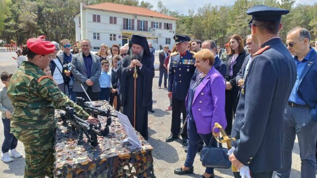 Ο Σεβασμιώτατος Μητροπολίτης μας κ. Πρόδρομος, μετά την Θεία Λειτουργία στο Αρσάνι και την προγραμματισμένη συνάντηση με τον Πρωθυπουργό κ. Κυριάκο Μητσοτάκη στα Γραφεία της Μητροπόλεως, μετέβη, κατόπιν προσκλήσεως, στο Στρατόπεδο της πόλεώς μας, όπου τέλεσε την Δοξολογία επί τη Εορτή του Αγίου Μεγαλομάρτυρος Γεωργίου του Τροπαιοφόρου, προστάτου του Πεζικού και του Στρατού Ξηράς, με την παρουσία των Τοπικών Αρχών, της Αντιπεριφερειάρχου Ρεθύμνης κ. Μαίρης Λιονή και του Δημάρχου Ρεθύμνης κ. Γεωργίου Μαρινάκη, προς τον οποίο ευχήθηκε και για την ονομαστική του εορτή. Ο Επίσκοπός μας συνεχάρη τον Ανώτερο Στρατιωτικό Διοικητή Ρεθύμνης και Διοικητή του 548 Α/Τ Πεζικού, Αντισυνταγματάρχη Πεζικού κ. Κωνσταντίνο Ζαφείρη, καθώς και τον Διοικητή του 547 Α/Τ Πεζικού, Αντισυνταγματάρχη Πεζικού κ. Διονύσιο Αναστασόπουλο, για το λαμπρό επιτελούμενο έργο.