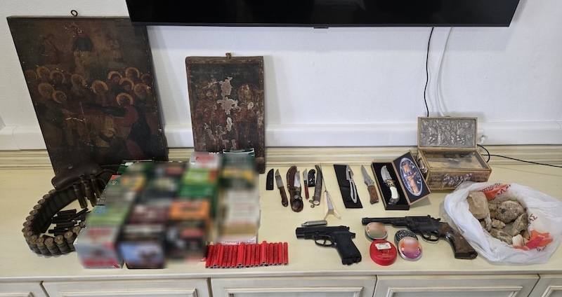 Ειδικότερα, στο πλαίσιο διερεύνησης υπόθεσης ενδοοικογενειακής βίας σε βάρος 52χρονης ημεδαπής από τον 60χρονο, αστυνομικοί των ανωτέρω υπηρεσιών πραγματοποίησαν χθες (11.04.2026) το μεσημέρι έρευνες σε οικίες που κατέχει και χρησιμοποιεί κατά τη διάρκεια των οποίων βρέθηκαν και  κατασχέθηκαν: