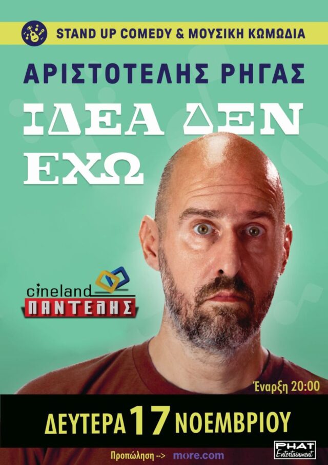 Ο γνωστός και αγαπημένος stand-up comedian και μουσικός Αριστοτέλης Ρήγας επιστρέφει με την τέταρτη προσωπική του παράσταση «Ιδέα δεν έχω». Γνωστός για το ευφυές χιούμορ, τα καταιγιστικά λογοπαίγνια και τη σατιρική του ματιά που αποφεύγει στερεότυπα και «φλερτάρει» με την πολιτική ορθότητα, παρουσιάζει για τελευταία σεζόν την sold out επιτυχία του.