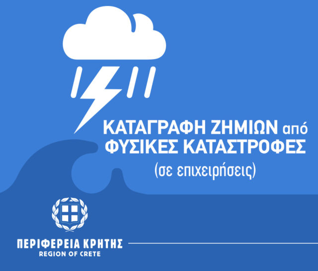 Ως εκ τούτου, όλοι οι ενδιαφερόμενοι επιχειρηματίες των οποίων οι επιχειρήσεις έχουν υποστεί ζημιές, μπορούν να επισκέπτονται την ιστοσελίδα της Περιφέρειας Κρήτης και στην ενότητα «καταγραφή ζημιών από φυσικές καταστροφές για επιχειρηματίες» να βρίσκουν την απαραίτητη πληροφόρηση, την σχετική αίτηση και κάθε άλλο χρηστικό υλικό. Δείτε τον παρακάτω σύνδεσμο: www.crete.gov.gr/press-releases/katagrafi-zimion-stis-epicheiriseis-apo-tin-prosfati-theominia-gia-tis-p-e-irakleioy-kai-rethymnoy