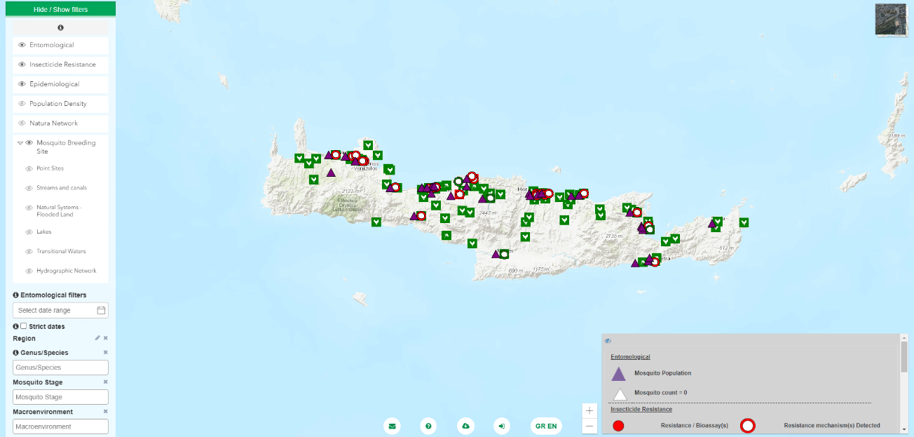 Αξίζει να σημειωθεί ότι την τελευταία τριετία η Περιφέρεια Κρήτης, σε συνεργασία με το Ίδρυμα Τεχνολογίας και Έρευνας (ΙΤΕ) – Ινστιτούτο Μοριακής Βιολογίας και Βιοτεχνολογίας (ΙΤΕ-ΙΜΒΒ) χρηματοδότησε την ανάπτυξη της Βάσης Δεδομένων VectorMap-GR. Το σύστημα αυτό είναι ένα πρωτοπόρο εργαλείο επιχειρησιακής διαχείρισης εντομολογικών και επιδημιολογικών δεδομένων επιτήρησης που αναπτύχθηκε πρώτη φορά στην Περιφέρεια Κρήτης και αποσκοπεί στην ανάπτυξη και υποστήριξη τεκμηριωμένων προγραμμάτων καταπολέμησης των κουνουπιών σε όλη την Ελλάδα.