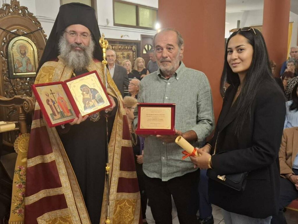 Προ της απολύσεως του Εσπερινού, απευθύνθηκε στους πιστούς, με συγκινητικούς λόγους, ο Εφημέριος της Ενορίας, Αιδεσιμολ. Πρωτοπρεσβύτερος Γεώργιος Γαλεράκης, ο οποίος αναφέρθηκε στη συμπλήρωση των 20 ετών από τη θεμελίωση του Ιερού Ναού υπό του αοιδίμου Μητροπολίτου Ρεθύμνης και Αυλοποτάμου κυρού Ανθίμου, καθώς και στο πρόσωπο της δωρήτριας του οικοπέδου, μακαριστής Ελένης Λαγουδάκη, και παρεκάλεσε τον Σεβασμιώτατο να επιδώσει επαίνους και ιερές εικόνες σε ανθρώπους που συνήργησαν στο σπουδαίο τούτο έργο μέχρι σήμερα.