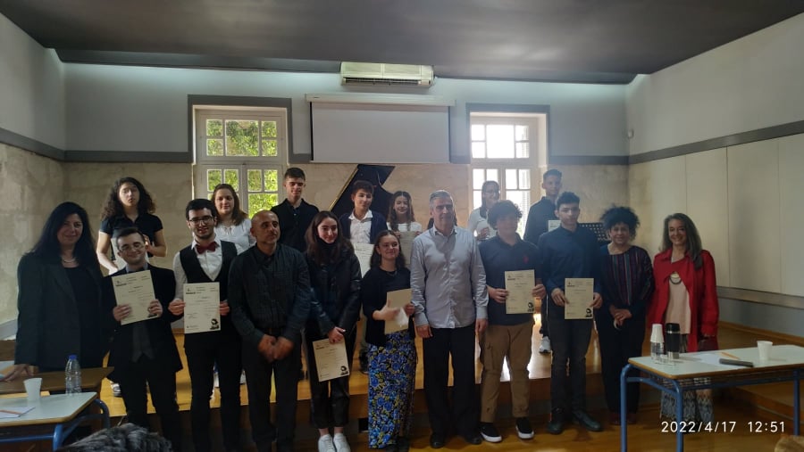 Με ιδιαίτερη χαρά και περηφάνεια, η σχολική κοινότητα του ΜΣΡ συγχαίρει το μαθητή της Γ’ Γυμνασίου Σπάχο Σεμπάστιαν, (τάξη πιάνου κ. Βουρεξάκη Ερωφίλης) ο οποίος απέσπασε το Α’ βραβείο στην κατηγορία «μικροί σολίστες» (για παιδιά μέχρι 15 ετών) στον 3ο Παγκρήτιο Διαγωνισμό Πιάνου «Αλίκη Βατικιώτη», που διεξήχθη στο Βενιζέλειο Ωδείο Χανίων στις 17 Απριλίου 2022.