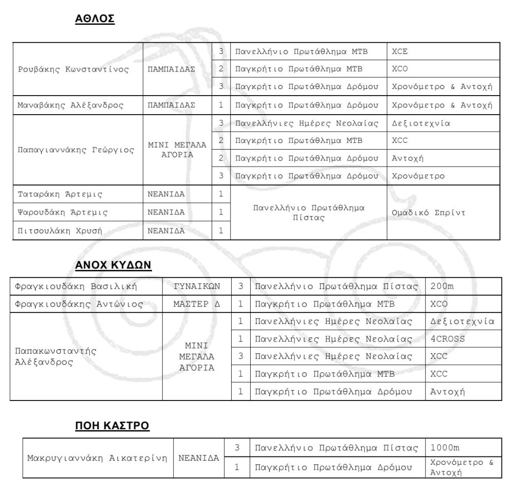 - Ο Δήμος Ρεθύμνου, με τον Αντιδήμαρχο Αθλητικών Θεμάτων Νίκο Προβιά και τον Αντιδήμαρχο Πολιτισμού Μάνο Τσάκωνα.