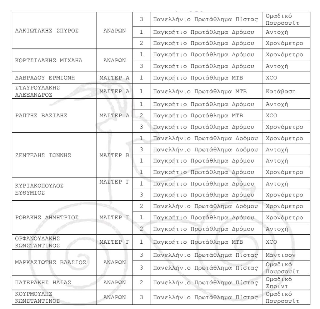 ΟΙ ΑΘΛΗΤΕΣ/ΤΡΙΕΣ ΠΟΥ ΒΡΑΒΕΥΘΗΚΑΝ ΑΝΑ ΣΩΜΑΤΕΙΟ: