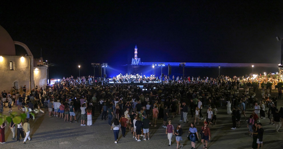 Χιλιάδες πολίτες και επισκέπτες της Κρήτης κατέκλυσαν το Ενετικό λιμάνι Χανίων και το Ενετικό λιμάνι Ηρακλείου σε δύο διαδοχικές συναυλίες χειροκροτώντας θερμά τους μουσικούς της Κρατικής Ορχήστρας Αθηνών (ΚΟΑ). Οι συναυλίες ήταν αφιερωμένες στον Μίκη Θεοδωράκη, στο πλαίσιο του αφιερωματικού έτους για τα 100 χρόνια από τη γέννησή του και αυτές ήταν ο επίλογος για φέτος του επιτυχημένου θεσμού του φεστιβάλ Κρήτης της Περιφέρειας.