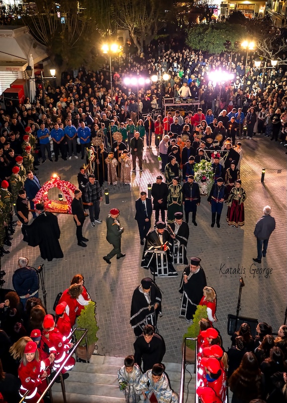 Ακολούθησε η περιφορά του Επιταφίου στους δρόμους της πόλης, παρουσία εκπροσώπων της πολιτικής και αυτοδιοικητικής ζωής του Ρεθύμνου, καθώς και πλήθους κόσμου που συμμετείχε με σεβασμό και ευλάβεια στην κορύφωση του Θείου Δράματος.