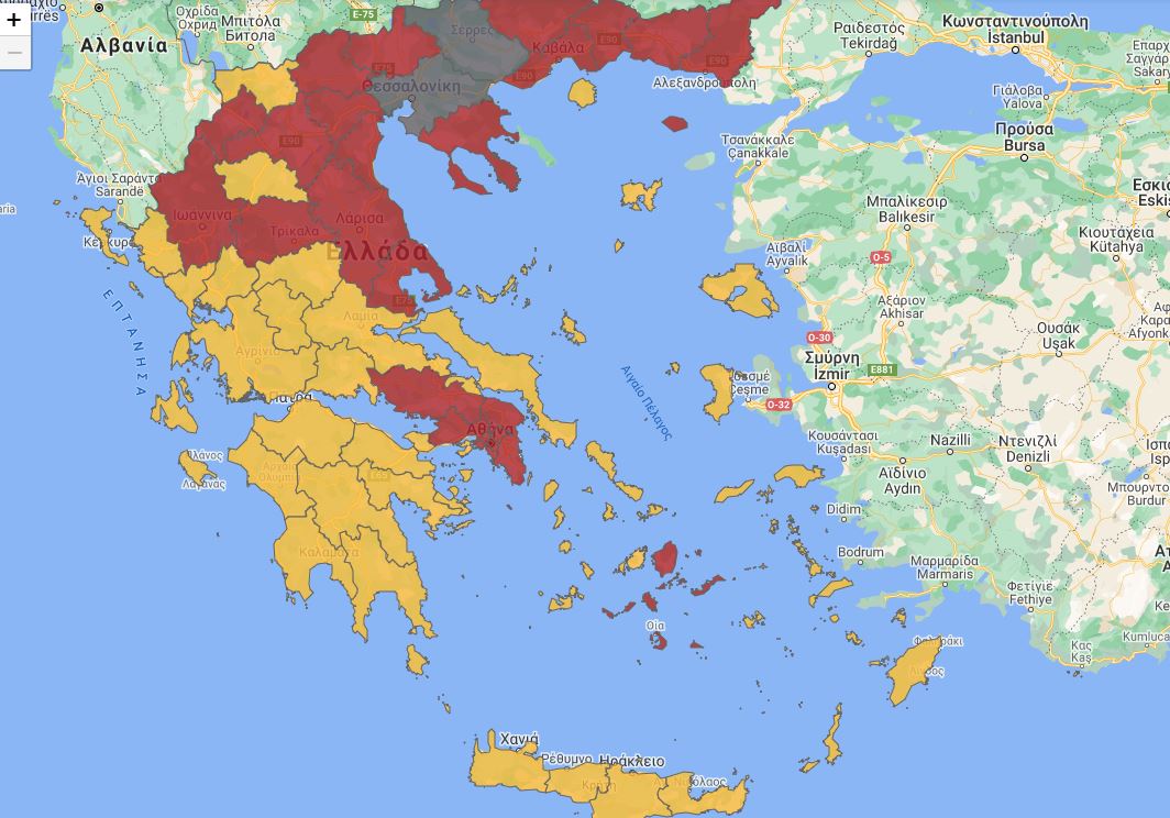 Στο επίπεδο Γ – συναγερμού (γκρι): Θεσσαλονίκη, Σέρρες