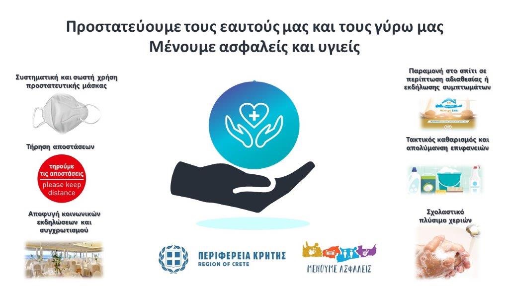 H ανάληψη εκ μέρους όλων μας της ατομικής ευθύνης που μας αναλογεί ως προς τη διαφύλαξη της Δημόσιας Υγείας θα πρέπει να συνοδεύεται και από την υιοθέτηση μέτρων και πολιτικών εκ μέρους του κρατικού μηχανισμού για την ενίσχυση και την κινητοποίηση του Δημόσιου Συστήματος Υγείας και των επαγγελματιών υγείας, ώστε να μπορέσουν να ανταποκριθούν με αποτελεσματικότητα και επάρκεια στην παρούσα πανδημία. Η Περιφέρεια Κρήτης από την πλευρά της παραμένει στην πρώτη γραμμή της μάχης κατά του Κορωνοϊού και συνεχίζει, όπως έπραξε από την πρώτη στιγμή της πανδημίας, να ενισχύει έμπρακτα τις Δομές Υγείας της Κρήτης με την απαραίτητη υλικοτεχνική υποδομή και τον αναγκαίο βιοϊατρικό εξοπλισμό για τη θωράκιση τους και την επαύξηση της ανταποκρισιμότητάς τους στις νέες υγειονομικές συνθήκες.