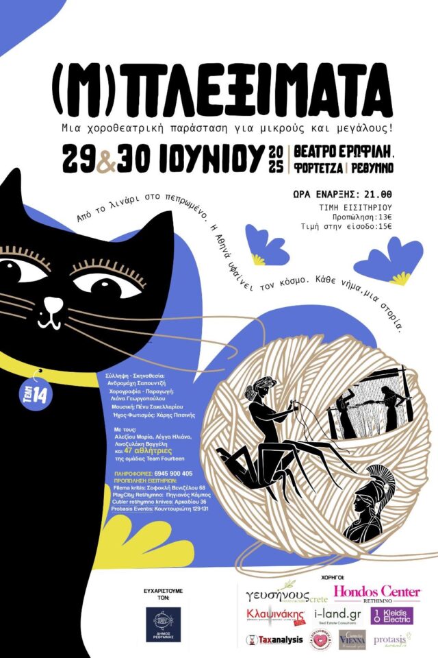Η ομάδα Team Fourteen παρουσιάζει την χοροθεατρική παράσταση (Μ)ΠΛΕΞΙΜΑΤΑ βασισμένη σε μία πρωτότυπη σύλληψη με ανθρωπολογική, παιδαγωγική και αισθητική αξία, που συνδυάζει λαογραφικά, ιστορικά και μυθολογικά στοιχεία.