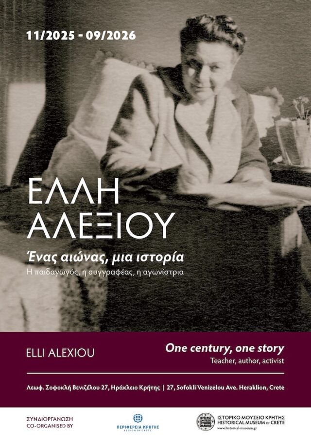 Σε μια εμβληματική γυναικεία μορφή, που αφιέρωσε τη ζωή της στα παιδιά, στην τέχνη και στο όραμα ενός ανθρωπινότερου κόσμου είναι αφιερωμένη η νέα περιοδική έκθεση του Ιστορικού Μουσείου Κρήτης με τίτλο, «ΕΛΛΗ ΑΛΕΞΙΟΥ. Ένας αιώνας, μια ιστορία. Η παιδαγωγός, η συγγραφέας, η αγωνίστρια», που πραγματοποιείται με την υποστήριξη της Περιφέρειας Κρήτης.