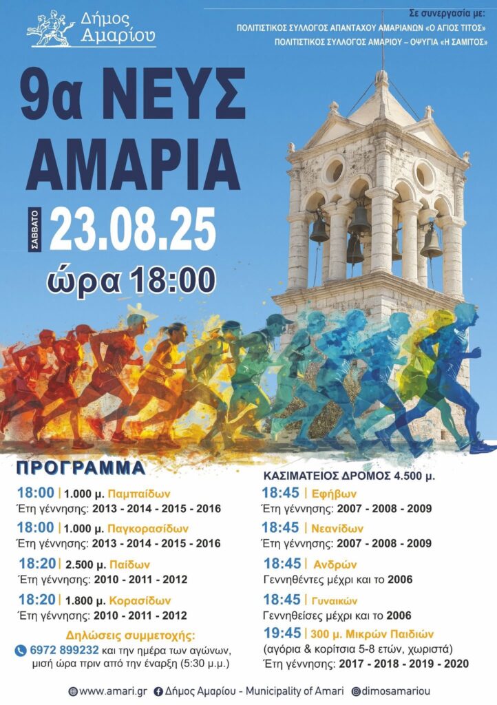18:00 Αγώνες Δρόμου 2025 “ΝΕΥΣΑΜΑΡΙΑ” για όλες τις ηλικίες – Αφετηρία στην ανατολική είσοδο του χωριού.