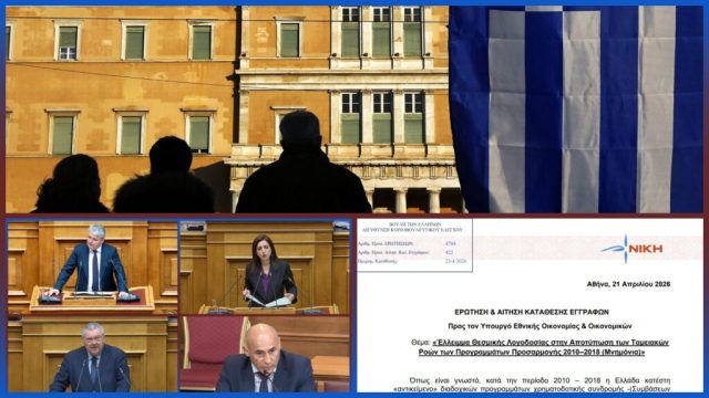 Σκληρή κοινοβουλευτική παρέμβαση της ΝΙΚΗΣ για τα 422 δισ. χρέους και τη σιωπή γύρω από τις πραγματικές ροές των μνημονιακών δανείων