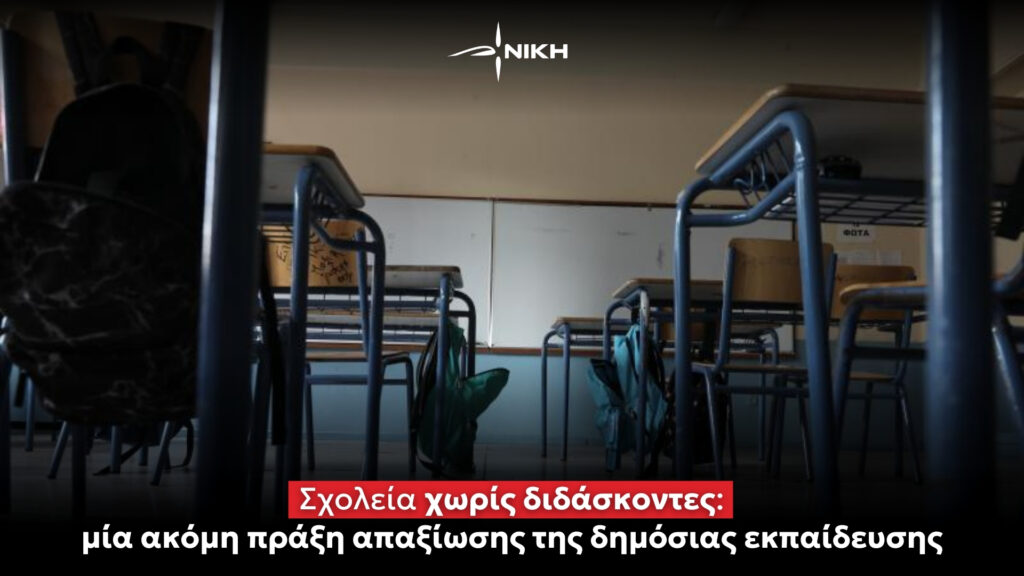 ΝΙΚΗ: «Σχολεία χωρίς διδάσκοντες: μία ακόμη πράξη απαξίωσης της δημόσιας εκπαίδευσης»