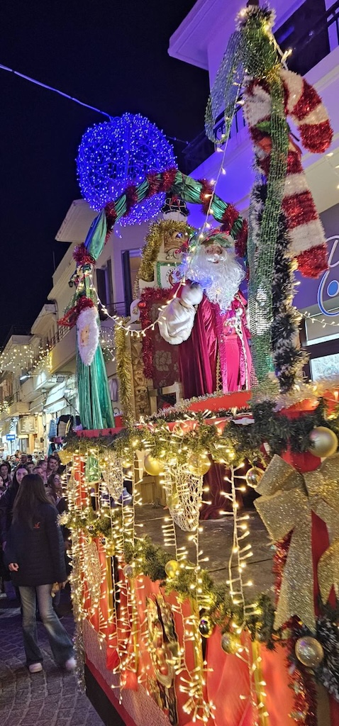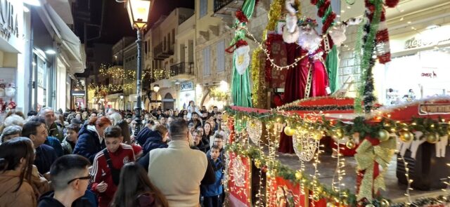 Κατά τη διαδρομή του μοίρασε δώρα, ευχές και χαμόγελα, μετατρέποντας την πόλη σε μια μεγάλη χριστουγεννιάτικη γιορτή.