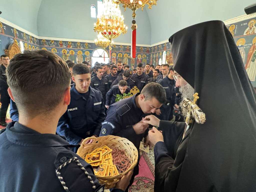 Ο Σεβασμιώτατος ομίλησε επίκαιρα στο εκκλησίασμα, ευχήθηκε στο ιστορικό Τμήμα Δοκίμων Αστυφυλάκων Ρεθύμνου τα δέοντα και διένειμε ευλογίες σε όλους τους σπουδαστές.