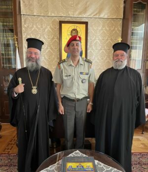 Ο Ανώτατος Διοικητής Φρουράς Ρεθύμνου και Διοικητής του 548 Α/Μ Τάγματος Πεζικού, Αντισυνταγματάρχης Ιωάννης Καλυβιώτης, ο οποίος πρόσφατα ανέλαβε τα καθήκοντά του, επισκέφθηκε, την Τρίτη, 1η Αυγούστου 2023, το Σεβασμιώτατο Μητροπολίτη Ρεθύμνης και Αυλοποτάμου κ. Πρόδρομο, στα Γραφεία της Ιεράς Μητροπόλεως.