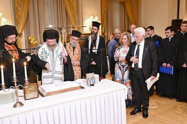 Στην συνέχεια ο Αρχιεπίσκοπος Αυστραλίας ως εκπρόσωπος του Οικουμενικού Πατριάρχη ευλόγησε την πίττα του Αγ. Βασιλείου δορυφορούμενος από τον Επίσκοπο Καμπέρας κο Αθηναγόρα , τον Επίσκοπο Χριστουπόλεως κο Βαρναβα Πρωτοσύγκελλο της Ι. Αρχ. Αθ. , τον Επίσκοπο Ταλαντίου κο Θεολόγο, τον Παν/το Αρχ. π. Συμεών Αυγουστάκη από την Μητρόπολη Ιλίου , τον Αιδες. π. Ελευθέριο Χρυσοχόου εκ του εν Αθήναις γραφείου του Οικουμενικού Πατριαρχείου και του διακόνου π. Ιωάννη. Συγκίνηση προκάλεσε στον Αρχιεπίσκοπο η χορωδία 20 σπουδαστών Γ΄Λυκείου της Ριζαρείου Εκκλησιαστικής σχολής που απέδωσε ύμνους προς τιμήν του φοιτήσαντος σε αυτην Αρχιεπισκόπου .