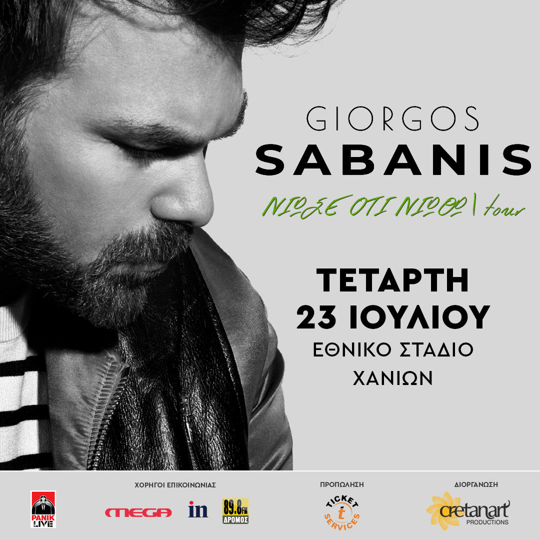 Ο Γιώργος Σαμπάνης δίνει καλοκαιρινό ραντεβού με το κοινό των Χανιών σε μία μεγαλειώδη συναυλία στο Εθνικό Στάδιο, την Τετάρτη 23 Ιουλίου.