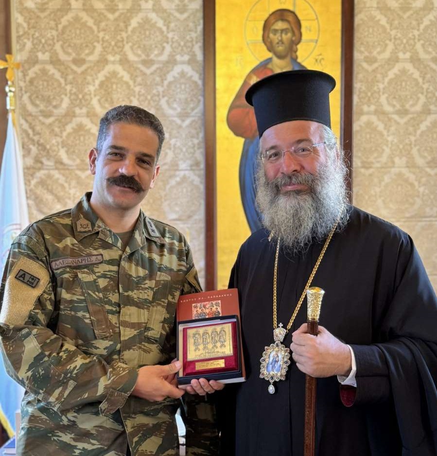 Επίσης, ο Σεβασμιώτατος προσέφερε στο νέο Διοικητή αναμνηστικό των Αγίων Τεσσάρων Μαρτύρων, καθώς και το βιβλίο του κ. Κωστή Ηλ. Παπαδάκη για τους Αγίους Τέσσερεις Νεομάρτυρες του Ρεθύμνου.