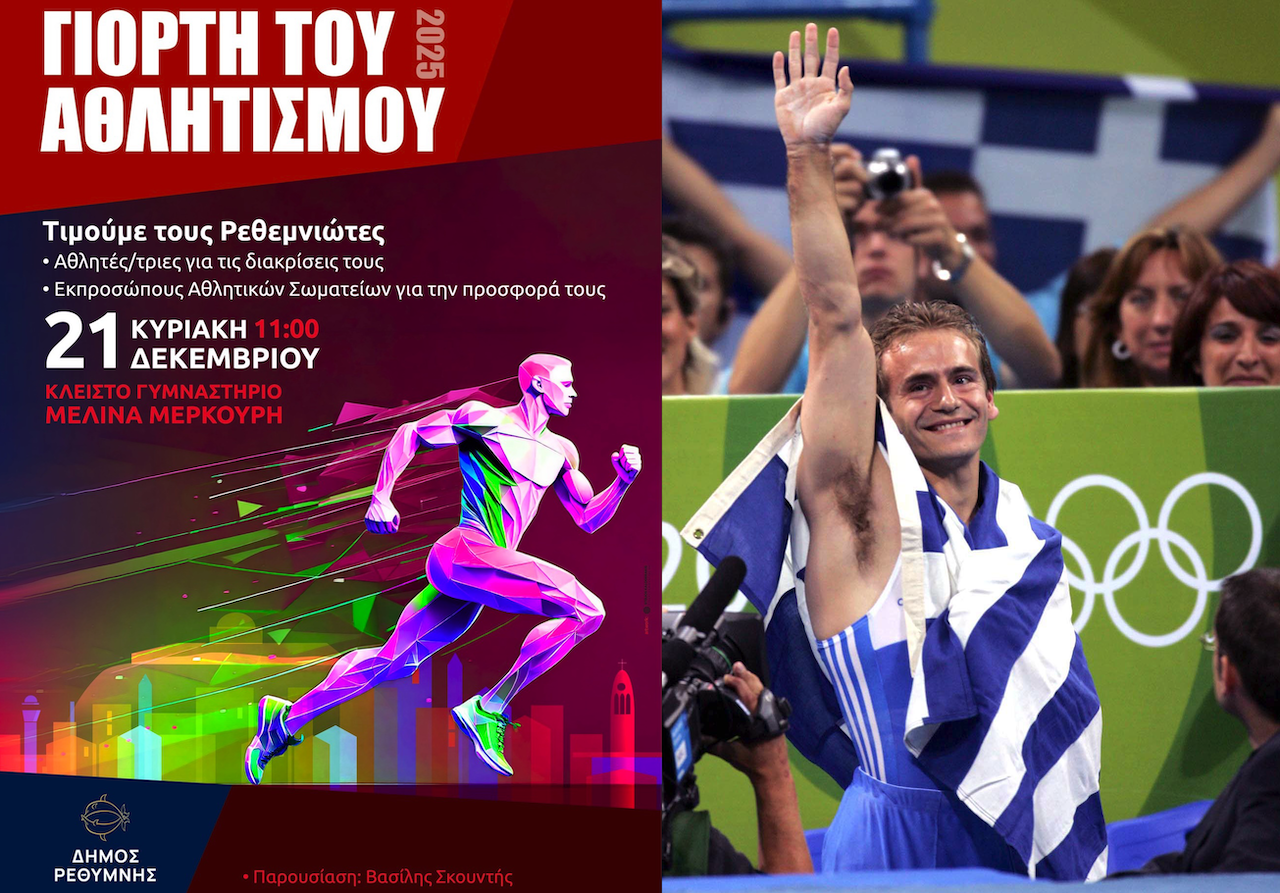Ο δις Ολυμπιονίκης της Ενόργανης Γυμναστικής, πρωταθλητής κόσμου και Ευρώπης, Δημοσθένης Ταμπάκος θα αποτελέσει το τιμώμενο πρόσωπο στη μεγάλη και καθιερωμένη «Γιορτή του Αθλητή», που θα πραγματοποιηθεί την ερχόμενη Κυριακή, 21 Δεκεμβρίου 2025, με ώρα έναρξης τις 11:00, στο κλειστό γήπεδο «Μελίνα Μερκούρη» του Ρεθύμνου.