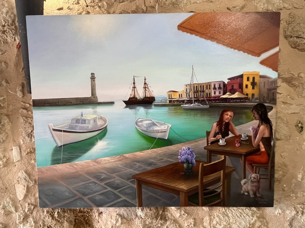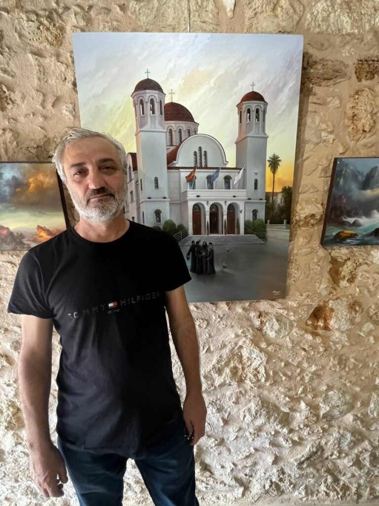 Ο Σεβασμιώτατος συνομίλησε με τον ζωγράφο και μαζί θαύμασαν τα ωραία και μοναδικά έργα, τα οποία κοσμούν την Έκθεση.