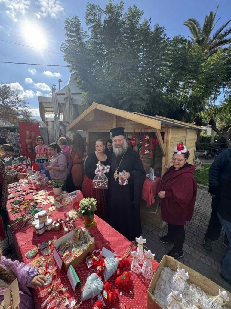 Το πρωί της Πέμπτης, 11ης Δεκεμβρίου 2025, ο Σεβασμιώτατος Μητροπολίτης Ρεθύμνης και Αυλοποτάμου κ. Πρόδρομος επισκέφθηκε το Χριστουγεννιάτικο Παζάρι του Συλλόγου «ΑΓΑΠΗ», έναντι του Ιερού Ναού Αγίων Τεσσάρων Μαρτύρων της πόλεως Ρεθύμνης, όπου είχε την ευκαιρία να συνομιλήσει με τους ωφελούμενους και τους εργαζομένους του Συλλόγου, συγχαίροντάς τους για το σπουδαίο έργο του Συλλόγου και τις θαυμάσιες χριστουγεννιάτικες κατασκευές.
