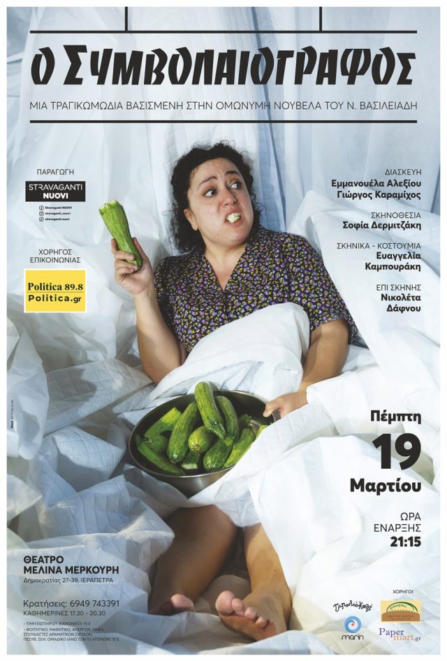 «Τραγικωμωδία» χαρακτηρίζεται ο μονόλογος – διασκευή που έχει κάνει η Εμμανουέλα Αλεξίου και ο Γιώργος Καραμίχος πάνω στην επιτυχημένη νουβέλα του Νίκου Βασιλειάδη. Μια παράσταση γεμάτη χιούμορ, συγκίνηση, πάθος, πόθους που δεν εκφράστηκαν ποτέ, ζωή που δεν βιώθηκε, ένα περίπτερο στενό και πνιγηρό, ένα κρεβάτι άδειο, μια γυναίκα με υπέροχο πισινό και… κολοκυθάκια! Ναι, καλά το ακούσατε, κολοκυθάκια!