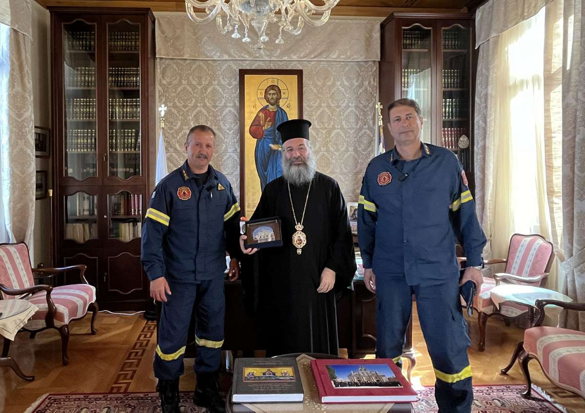 Ο Σεβασμιώτατος ευχήθηκε στους νέους Διοικητής καλή και γόνιμη θητεία, τονίζοντας τη σημασία της μέχρι τώρα πολύτιμη εμπειρία και προσφορά τους στην Πυροσβεστική Υπηρεσία, και τους διαβεβαίωσε ότι πάντοτε η Τοπική μας Εκκλησία και ο ίδιος προσωπικά θα βρίσκονται πλησίον τους για τη σύμπραξη και συμπαράσταση σε κάθε ανάγκη που θα προκύπτει, για το καλό του τόπου μας και την ασφάλεια των ανθρώπων και των περιουσιών τους. Και οι δύο Διοικητές ευχαρίστησαν το Σεβασμιώτατο, επισημαίνοντας τη σπουδαιότητα της ενότητας στον τόπο μας για το καλό όλων των ανθρώπων.