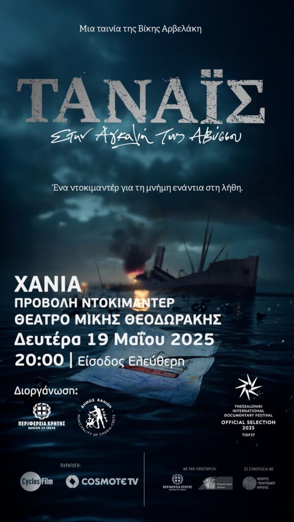 Στο πλαίσιο των επετειακών εκδηλώσεων για τα 84 χρόνια από την Μάχη της Κρήτης, η Περιφέρεια Κρήτης διοργανώνει δύο προβολές του νέο ιστορικού ντοκιμαντέρ «Τάναϊς: Στην Αγκαλιά της Αβύσσου», σε σκηνοθεσία της Βίκης Αρβελάκη.