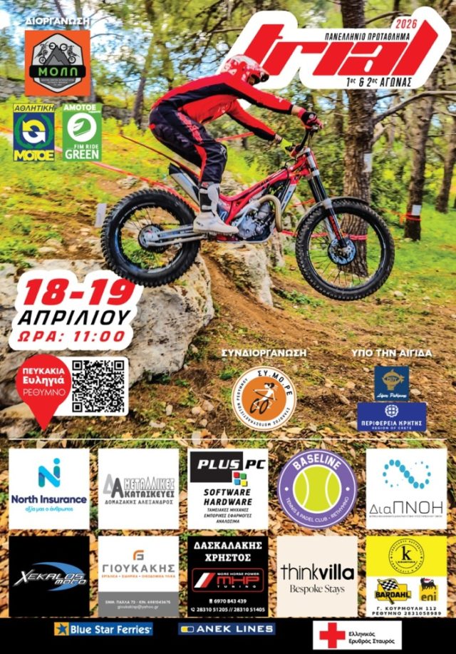 Με ιδιαίτερη χαρά ανακοινώνεται η διεξαγωγή του 1ου και 2ου αγώνα του Πανελληνίου Πρωταθλήματος Trialστο Ρέθυμνο Κρήτης, σηματοδοτώντας την επιστροφή του θεσμού στην περιοχή μετά από περισσότερα από 18 χρόνια.