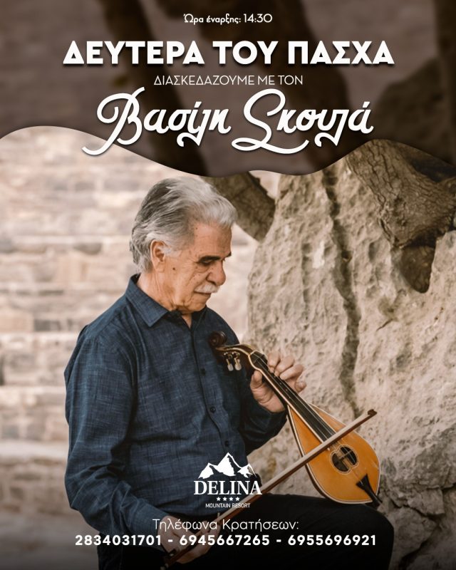Ο Βασίλης Σκουλάς με το συγκρότημα του θα σας διασκεδάσει στη Delina στα Ανώγεια, από τις 14.30 το μεσημέρι.