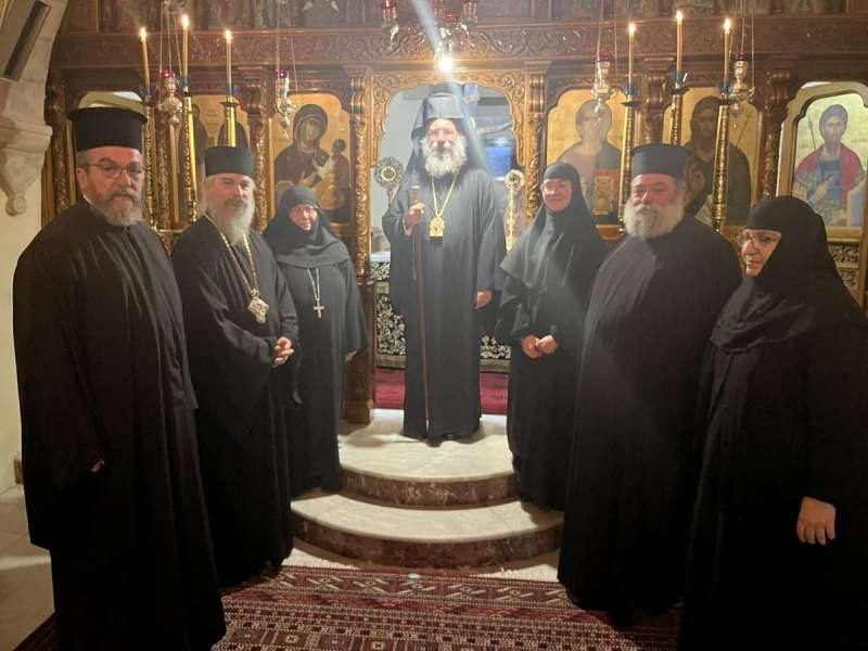 Ακολούθως, όλοι μετέβησαν στη μοναστηριακή τράπεζα, όπου ο Σεβασμιώτατος ευλόγησε και διένειμε την Αγιοβασιλόπιτα της Ιεράς Μονής, της οποίας το φλουρί έλαχε στον κ. Γεώργιο Χρηστίδη, Αγιογράφο και συνεργάτη της Μονής.