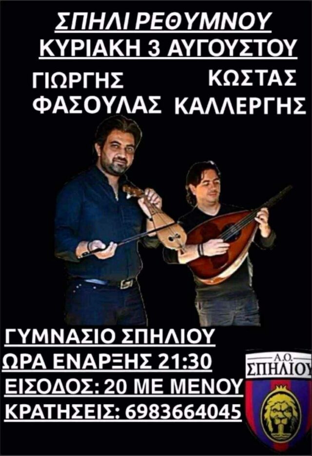 Τετάρτη 6 Αυγούστου στη Μέση Ρεθύμνου (πλατεία) στις 21.00