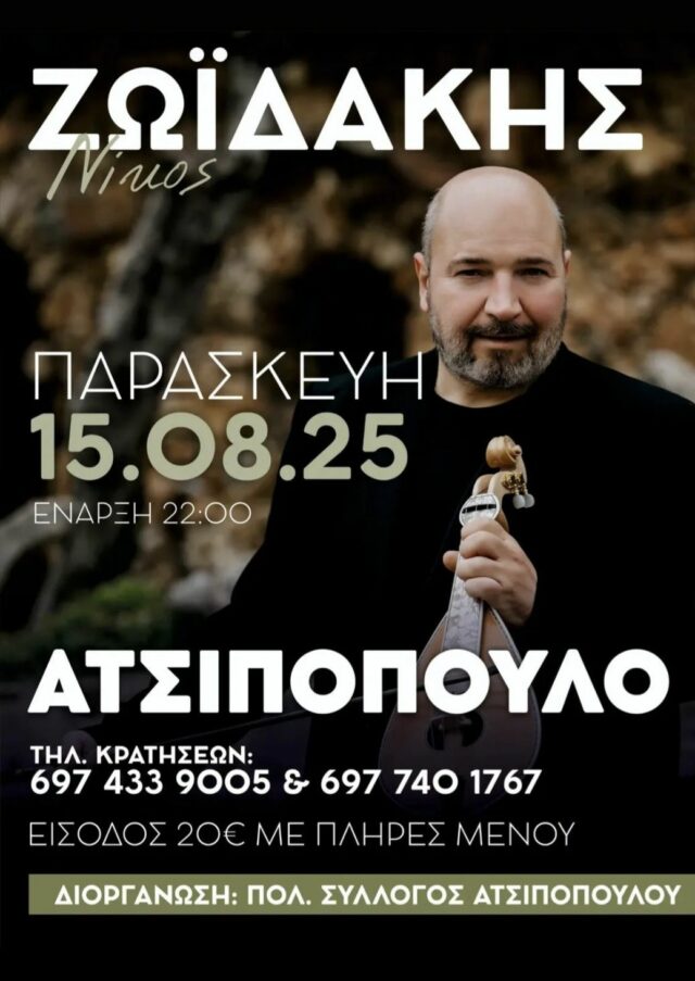 Ο Νίκος Ζωιδάκης ζωντανά στο Ατσιπόπουλο Ρεθύμνου την Παρασκευή 15 Αυγούστου 2025.