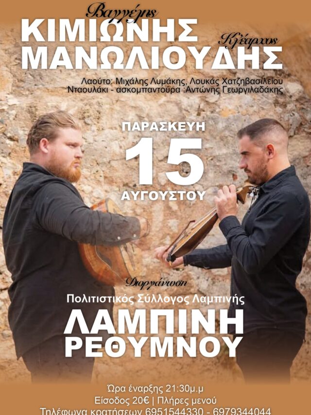 Μια ξεχωριστή βραδιά με τον Γιώργη Μανωλάκη τον Νίκο Σιδηροκαστρίτη και το Στέφανο Κουρουπάκη. Μην το χάσετε!