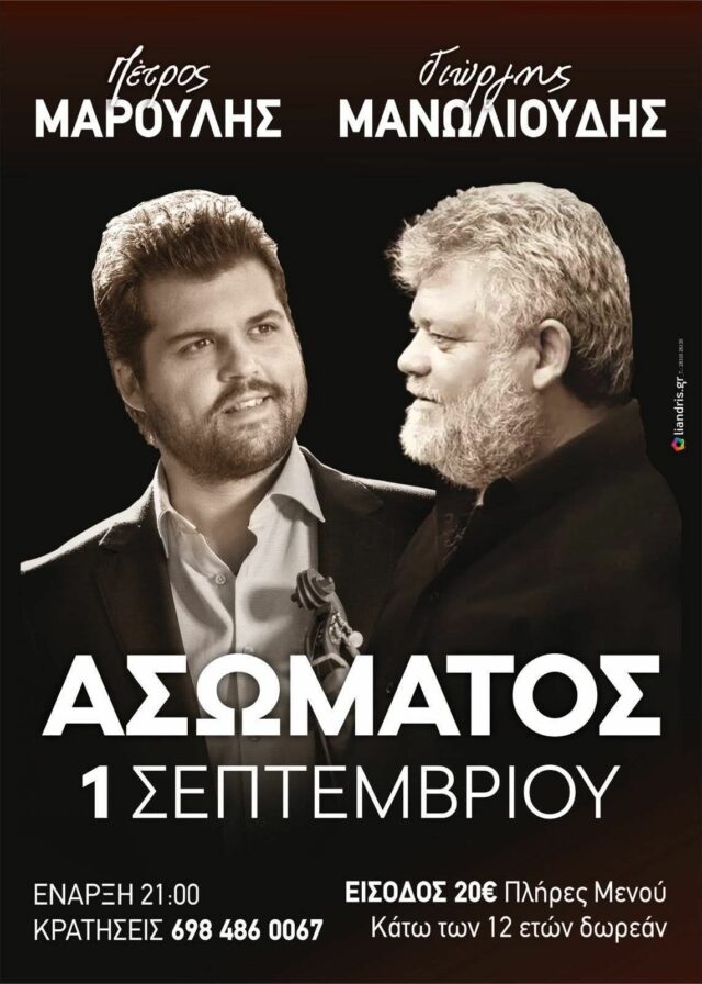 Είσοδος 20 ευρώ, πλήρες μενού – Παιδιά κάτω των 12 ετών δωρεάν.