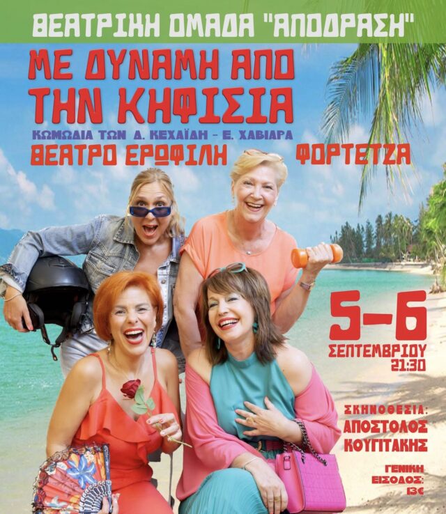 Η θεατρική ομάδα «Απόδραση» του Πολιτιστικού Συλλόγου Ρεθύμνου παρουσιάζει το διήμερο 5-6 Σεπτεμβρίου στο θέατρο Ερωφίλη στη Φορτέτσα, την ξεκαρδιστική κωμωδία των Δημήτρη Κεχαΐδη – Ελένης Χαβιαρά, «Με δύναμη απ’ την Κηφισιά».