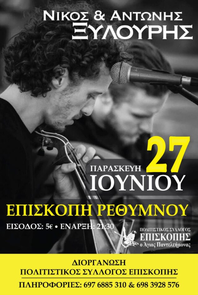 Το Σάββατο 28 Ιουνίου στο θέατρο ΜΥΘΩΔΙΑ στο Ρέθυμνο, και την Κυριακή 29 και Δευτέρα 30 Ιουνίου στο ΤΕΧΝΟΠΟΛΙΣ στο Ηράκλειο