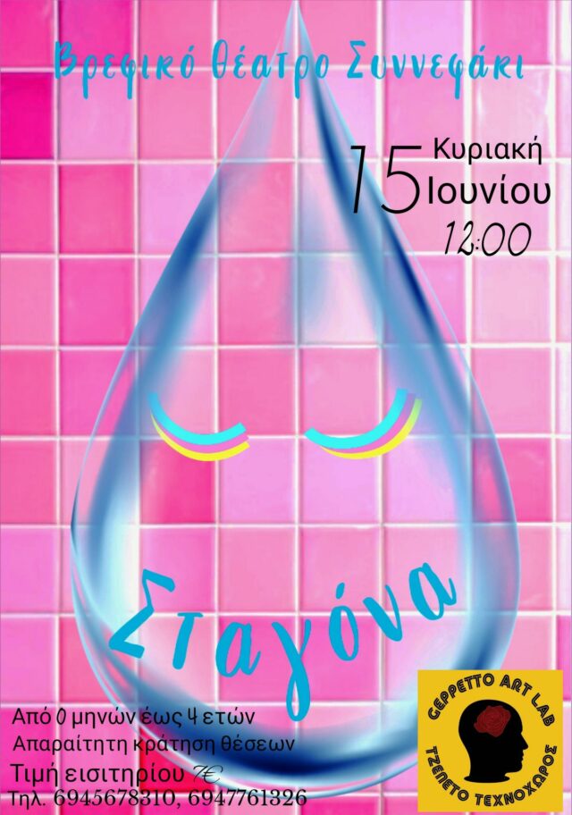 Το βρεφικό θέατρο Συννεφάκι παρουσιάζει τη νέα του βρεφική παράσταση “Σταγόνα”. Μια παράσταση για βρέφη και νήπια από 0-4 ετών.