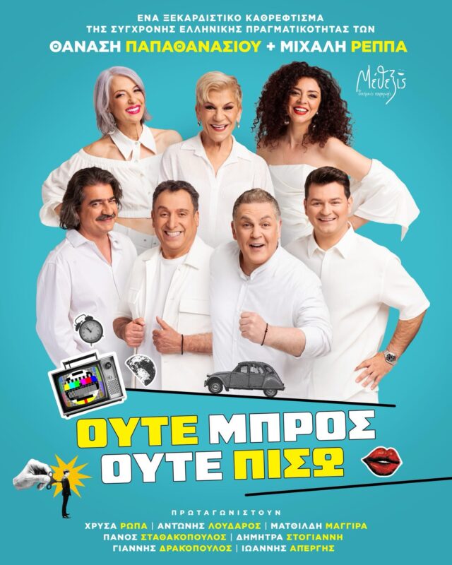 Ο Θανάσης Παπαθανασίου και ο Μιχάλης Ρέππας, σε παραγωγή της εταιρείας Μέθεξις του Χρήστου Τριπόδη, παρουσιάζουν αυτό το καλοκαίρι σε όλη την Ελλάδα τη νέα τους παράσταση «Ούτε Μπρος ούτε Πίσω».