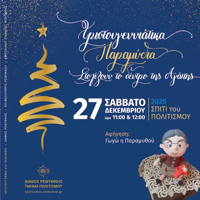 • Την Τρίτη 23 Δεκεμβρίου, ώρα 19:30, στη Σητεία, στο Οικομουσείο (πρώην ΚΕΓΕ).