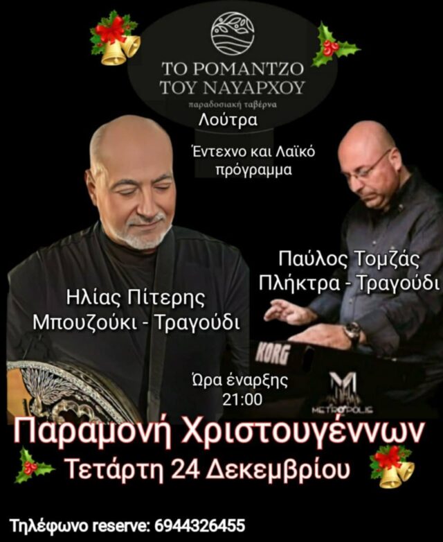 Μουσική βραδιά με τον Ηλία Πίτερη (μπουζούκι – τραγούδι) και τον Παύλο Τομζά (πλήκτρα – τραγούδι) στην Ταβέρνα «Το Ρομάντζο του Ναυάρχου» (Λούτρα Ρεθύμνου).