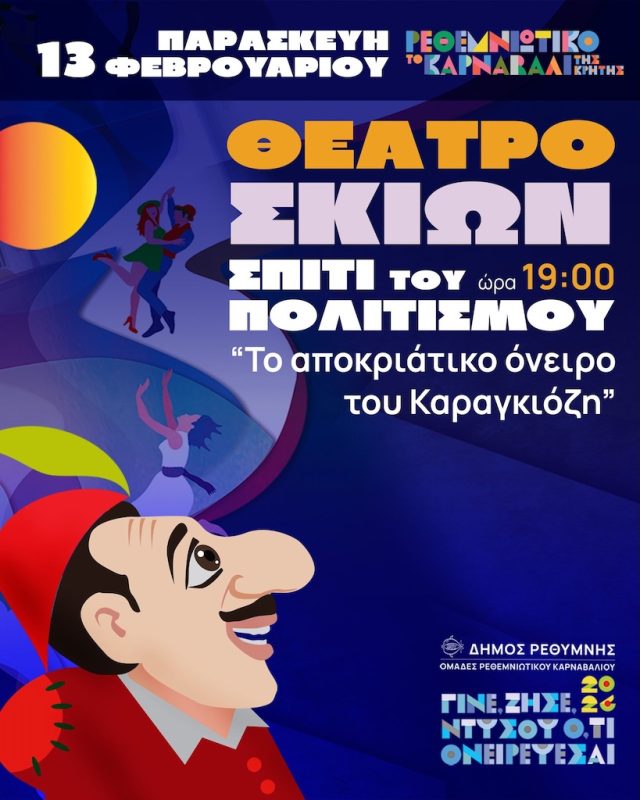 Η παράσταση «Το αποκριάτικο όνειρο του Καραγκιόζη» θα παρουσιαστεί στο Σπίτι του Πολιτισμού, την Παρασκευή 13 Φεβρουαρίου